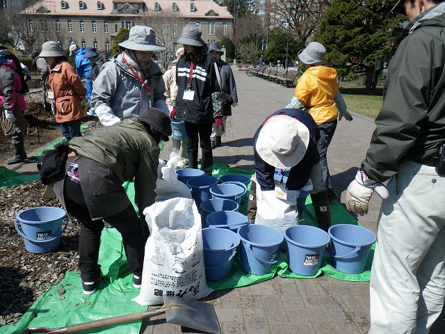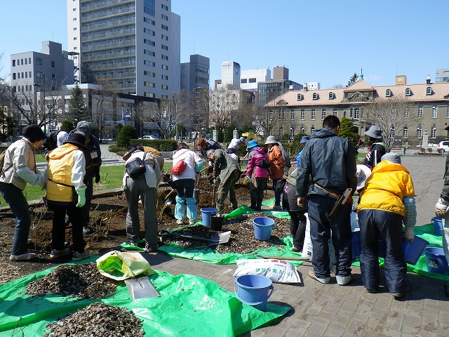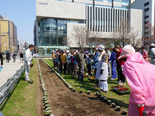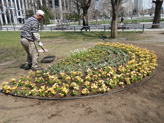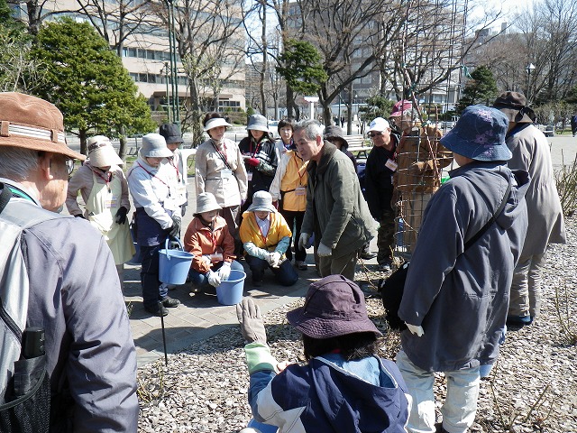 6月12日木曜日、いつも公園で活動している「花壇ボランティア」のみなさんと一緒に、植え込みを行いました。