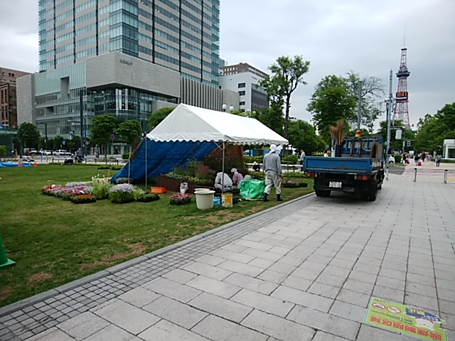受付は、西7丁目の西側(西8丁目よりです)の南側園路にあるテントで行っています。