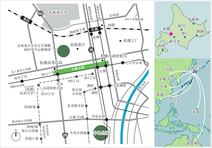 大通公园、位于札幌市中心部的公园、东西走向、从中央区大通西1丁目到大通西12丁目、长约1.5公里。