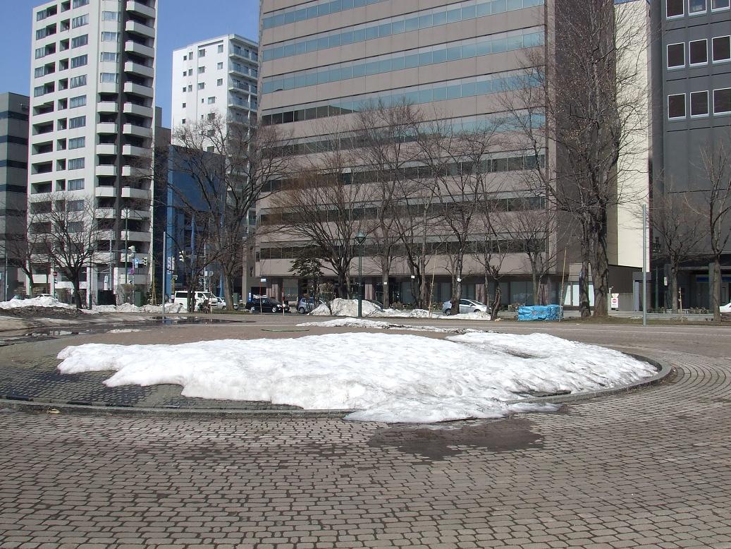 写真は、西7丁目の噴水です。雪解けまじかです。