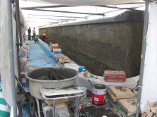 10月上旬に破損した、西2丁目壁泉の修理が今日も急ピッチで進んでいます。
