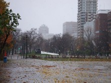 今日は強風とともに大通公園に雪が降りました。