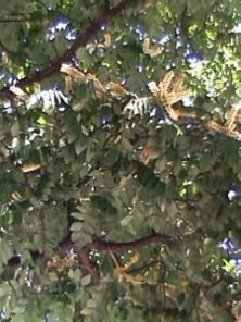 西4丁目の南東角にあるイヌエンジュの花が咲いています。