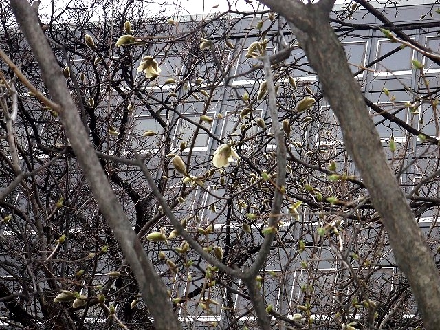 7丁目の北東角にあるキタコブシがいくつか咲き始めています。