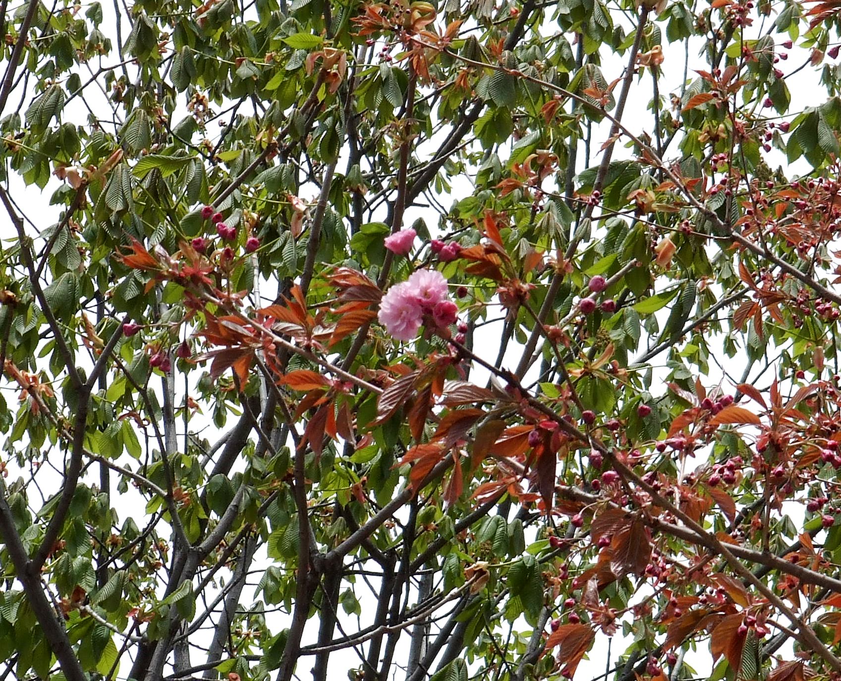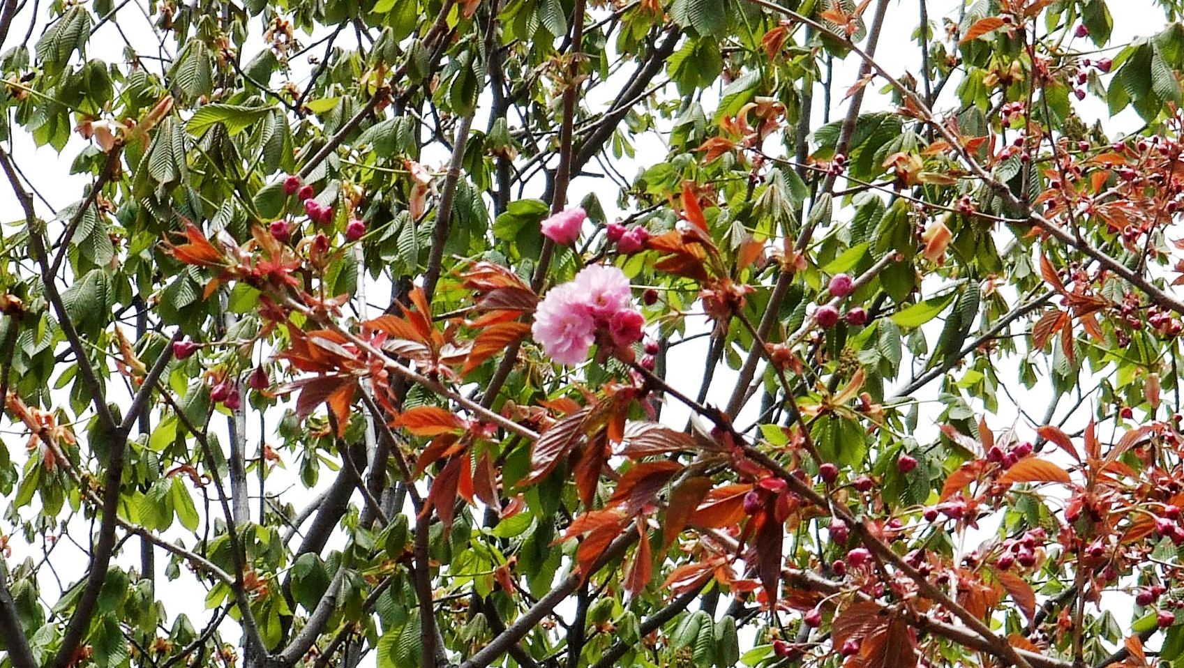 7丁目北側のサトザクラ(ヤエザクラ)がいくつか咲き始めました。