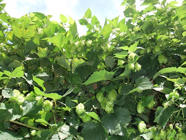 8丁目東側の花壇にあるホップの鞠花が見頃です。