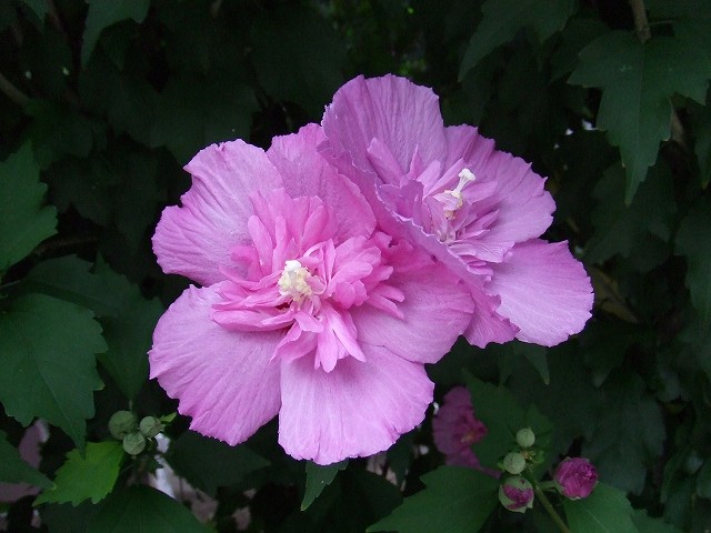ハイビスカスの仲間でもあるムクゲが見頃です。
