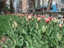 開花情報 2012年5月2日 ここ数日の穏やかなお天気で、公園内のお花も続々と咲き始めています。 西5丁目東側のチューリップ↓ まだ満開ではないようですが、淡いピンク色がキレイです。 西12丁目北東角のシモクレン↓ 一部咲き始めています。 西4丁目南東角のレンギョウ↓ もうすぐ見頃になりそうです。