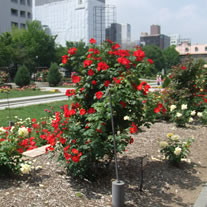 中央にカナール(水路)を配置したバラを中心とする沈床式の空間です。