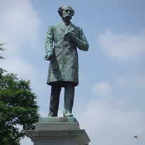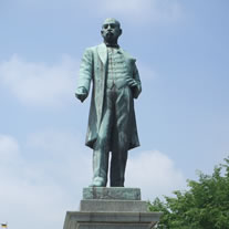 北海道開拓功労者顕彰像建立期成会が北海道100年を記念して建立。