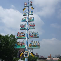マイバウムとはドイツの祭木のことであり、姉妹都市ミュンヘンから贈られ、1976年(昭和51年)に設置された。その後老朽化のため2000年(平成12年)に撤去され、翌年に復元した。高さ25メートル。