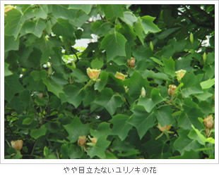 札幌市内には、北大農学部裏や旧低温研究所(現在ファカルティハウスエンレイソウ前)、植物園などに大木がありますが、大通公園のこのユリノキがいつ植えられたものかよく分かっていません。この木が大変珍しいことから、その後も苗木をあちこちに植え継がれ、現在では5丁目や6丁目に数本が花を咲かせるようになりました。初夏のまぶしい日差しを受けて花が開く珍しい姿を、一度よく見ていただきたいと思います。