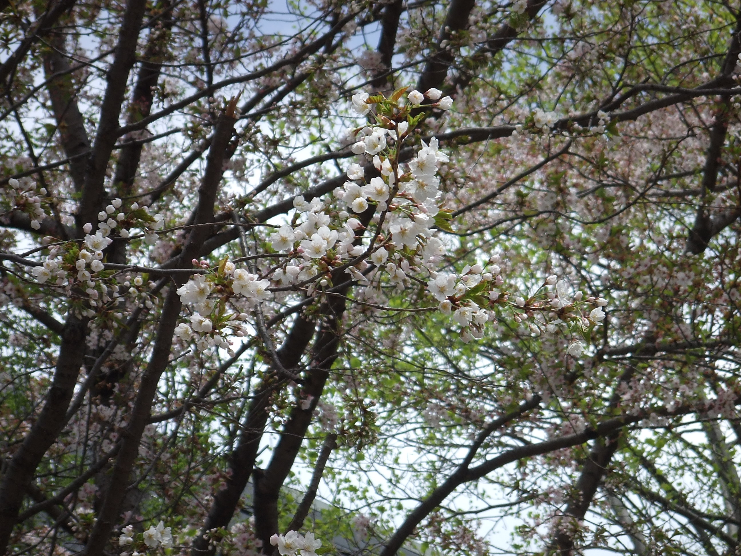 園内のエゾヤマザクラは、ほぼ葉桜となりました。ソメイヨシノは、ひらひらと花びらが舞い葉の方が多くなって来ています。バトンを受け取るように今はカスミザクラが咲いて来ました。数日のうちに見頃になりそうです。