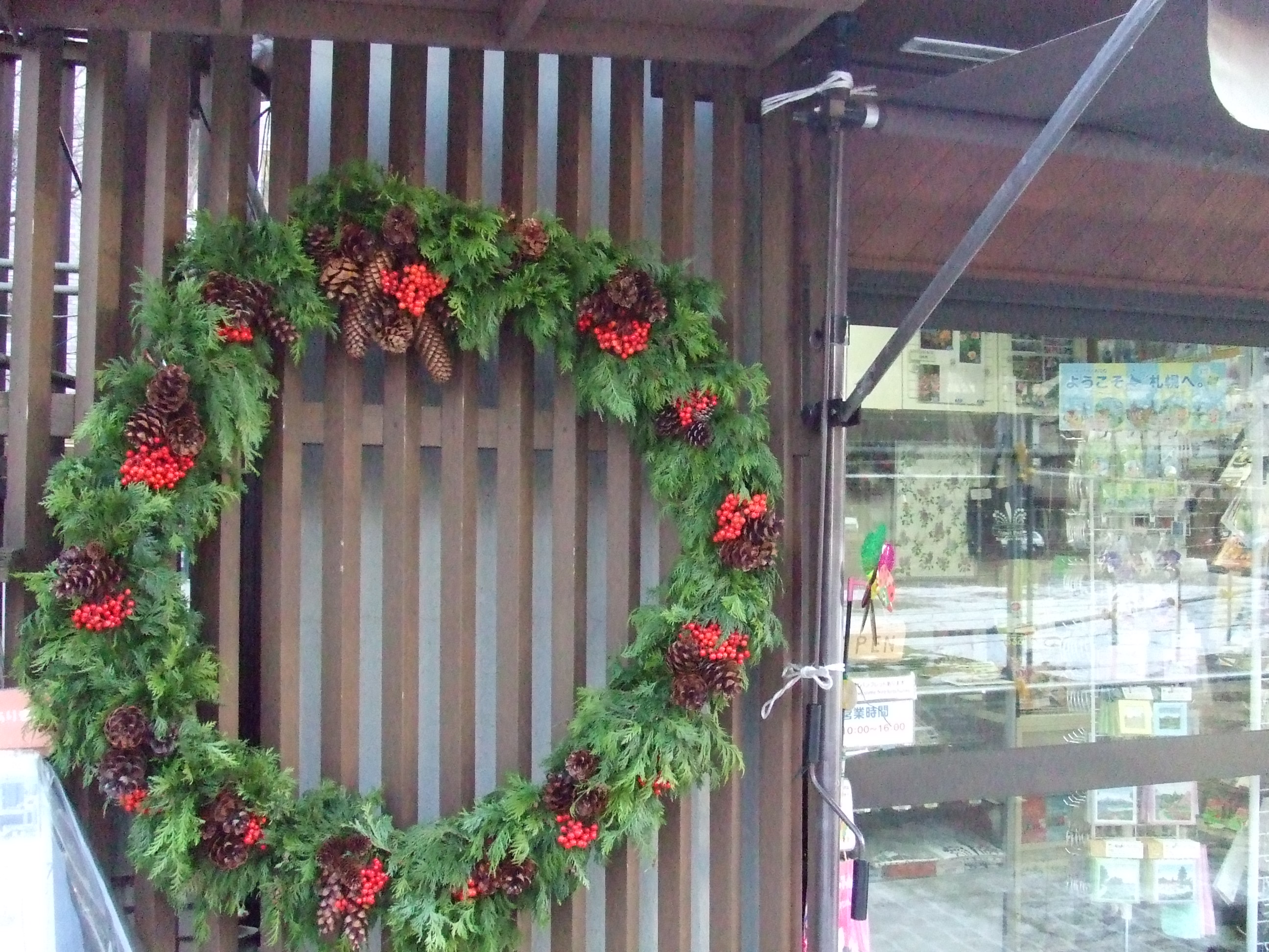 花壇ボランティアのメンバーさん達が今年も大通公園インフォメーションセンター&オフィシャルショップのためにとても立派なクリスマスリースを作って頂きました。昨年の2倍くらいの大きさでショップ横の壁に掛けていますがとても目立ちますね、本当にありがとうございます。