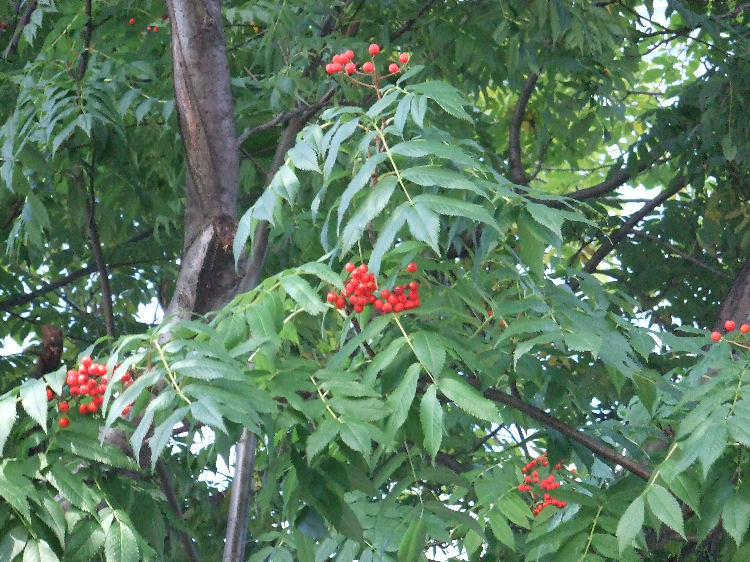西2丁目のサトウカエデがいちだんと赤味が増してきました。4丁目のナナカマドの実もきれいな色になってきました。