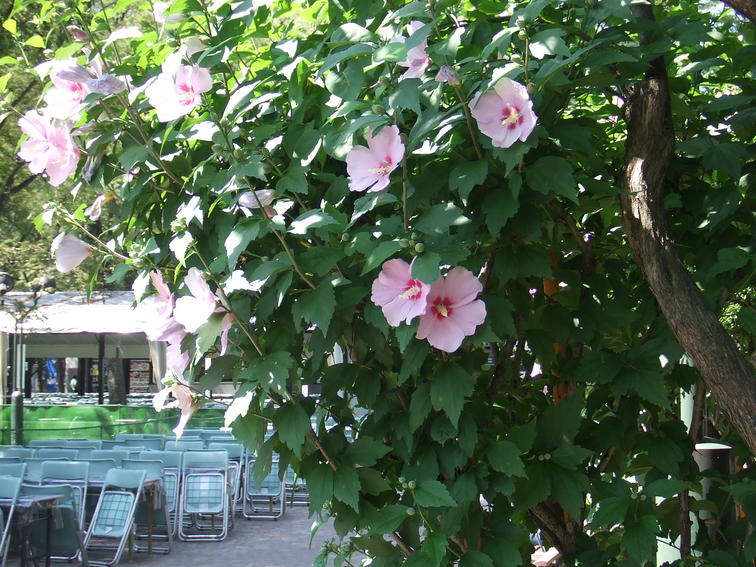 ムクゲが咲いています。 2016年8月7日 公園ではムクゲやノウゼンカズラ・イッサイサルスベリが咲いています。 西6丁目ムクゲ 西6丁目ムクゲとケヤキ 西2丁目 ノウゼンカズラ ハンギングバスケット 西4丁目イッサイサルスベリ 夏まつりの様子