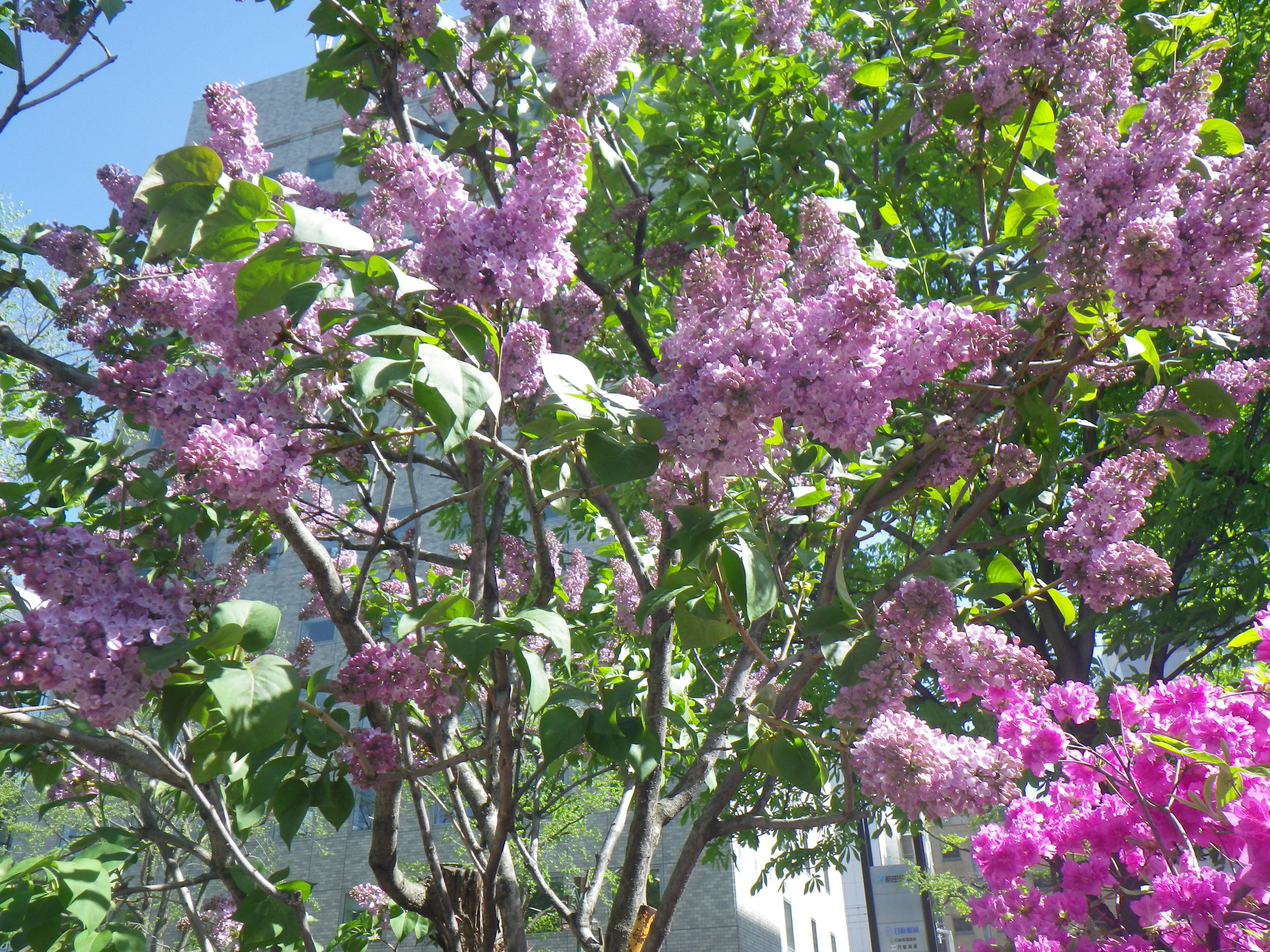 開花が進んできています。インフォメーションセンターの横の紫ライラックは陽当たりも良く