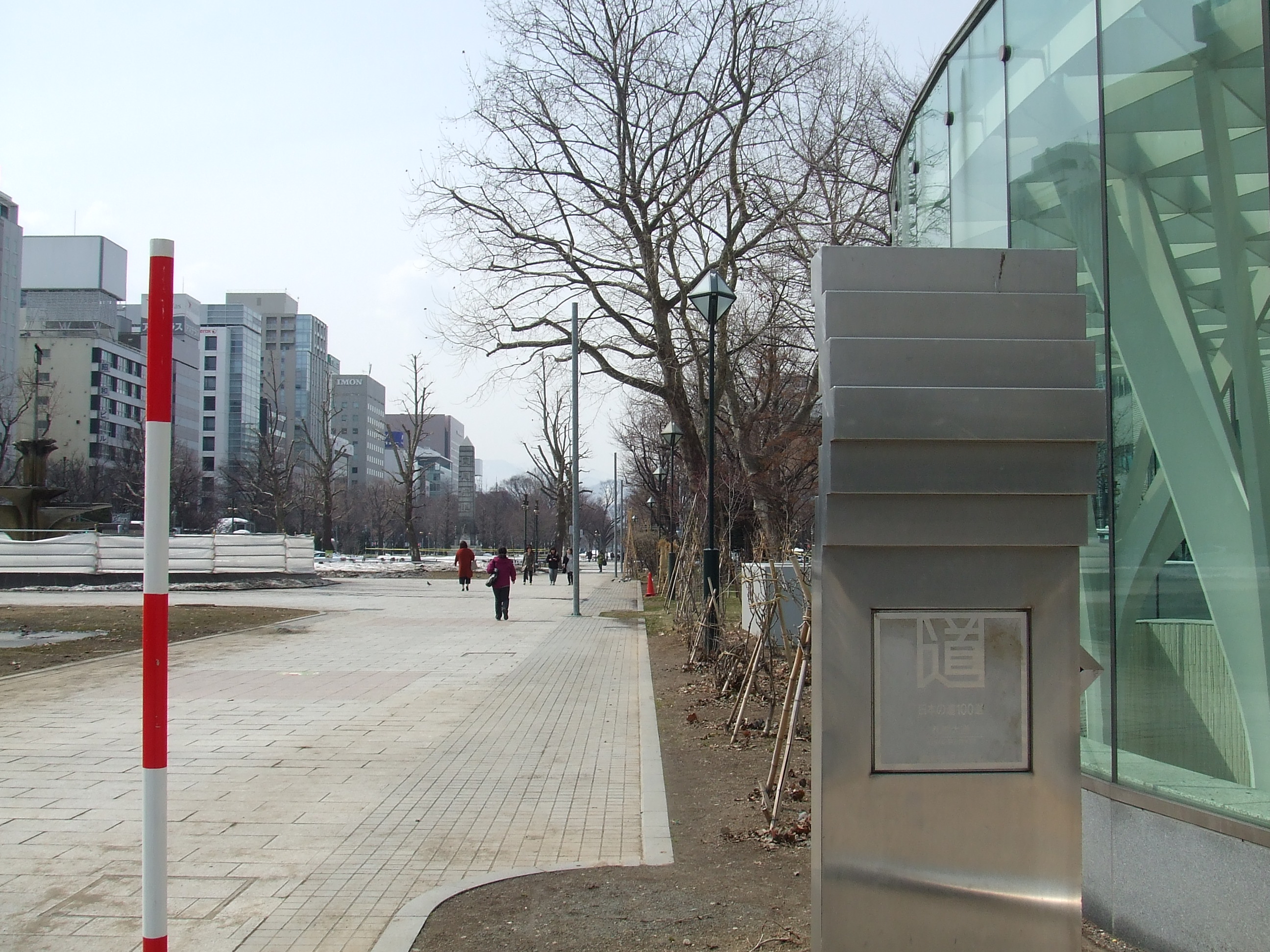 本日、大通公園は気温が10℃で着ていたコートを手に持って歩く人の