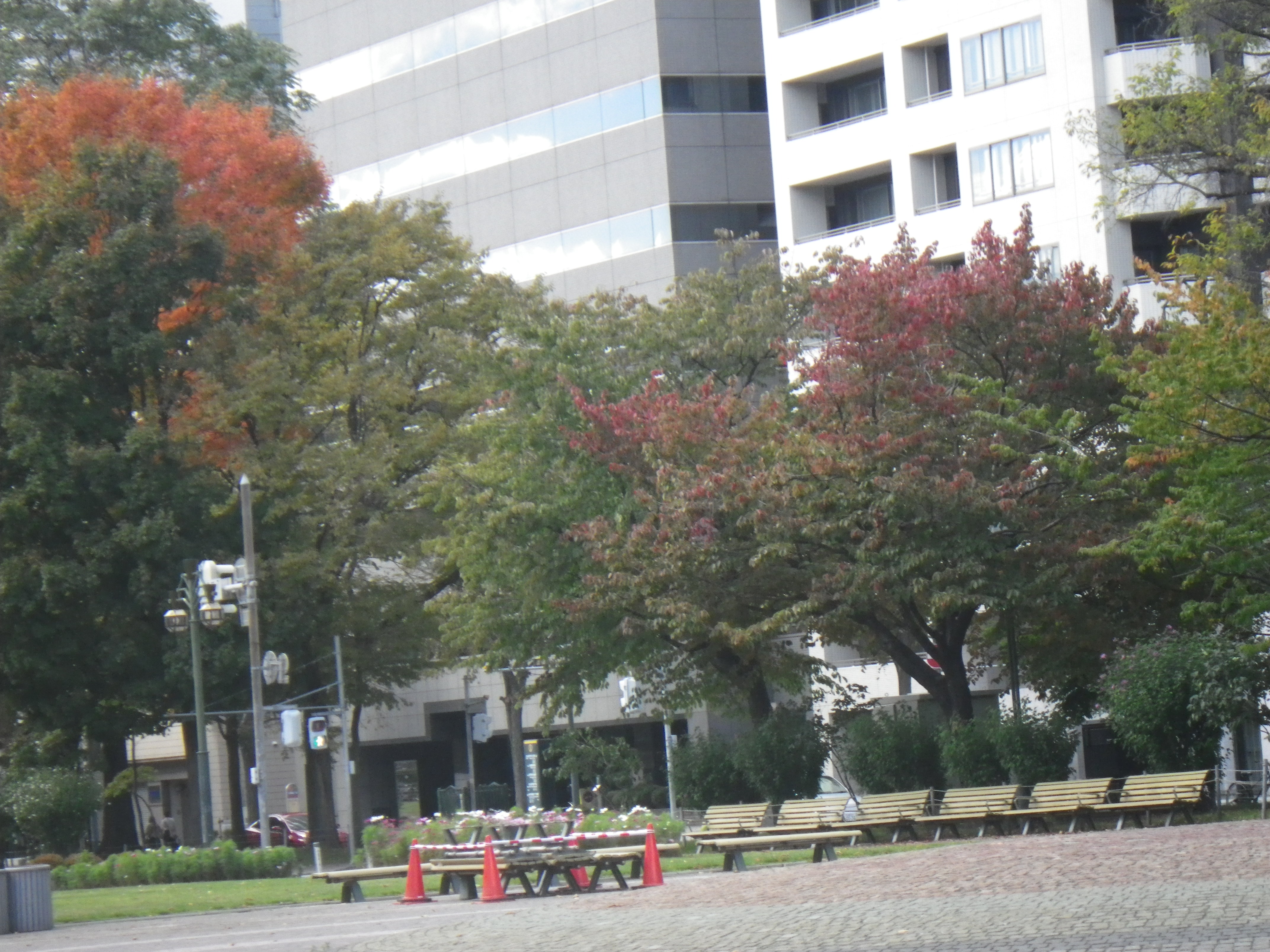 園内の紅葉情報 2018年10月8日 10月8日月曜日、3連休の最終日穏やかな天気で園内を散歩する人がたくさんいらっしゃいます。園内の樹々が少しずつ紅葉し始めています。秋の気配があちこちで感じられる季節となりましたね。 7・8丁目紅葉の様子 6丁目エゾヤマザクラ紅葉 これからも徐々に紅葉も進んでくると思います。ぜひお時間をつくって大通公園にお出かけください。