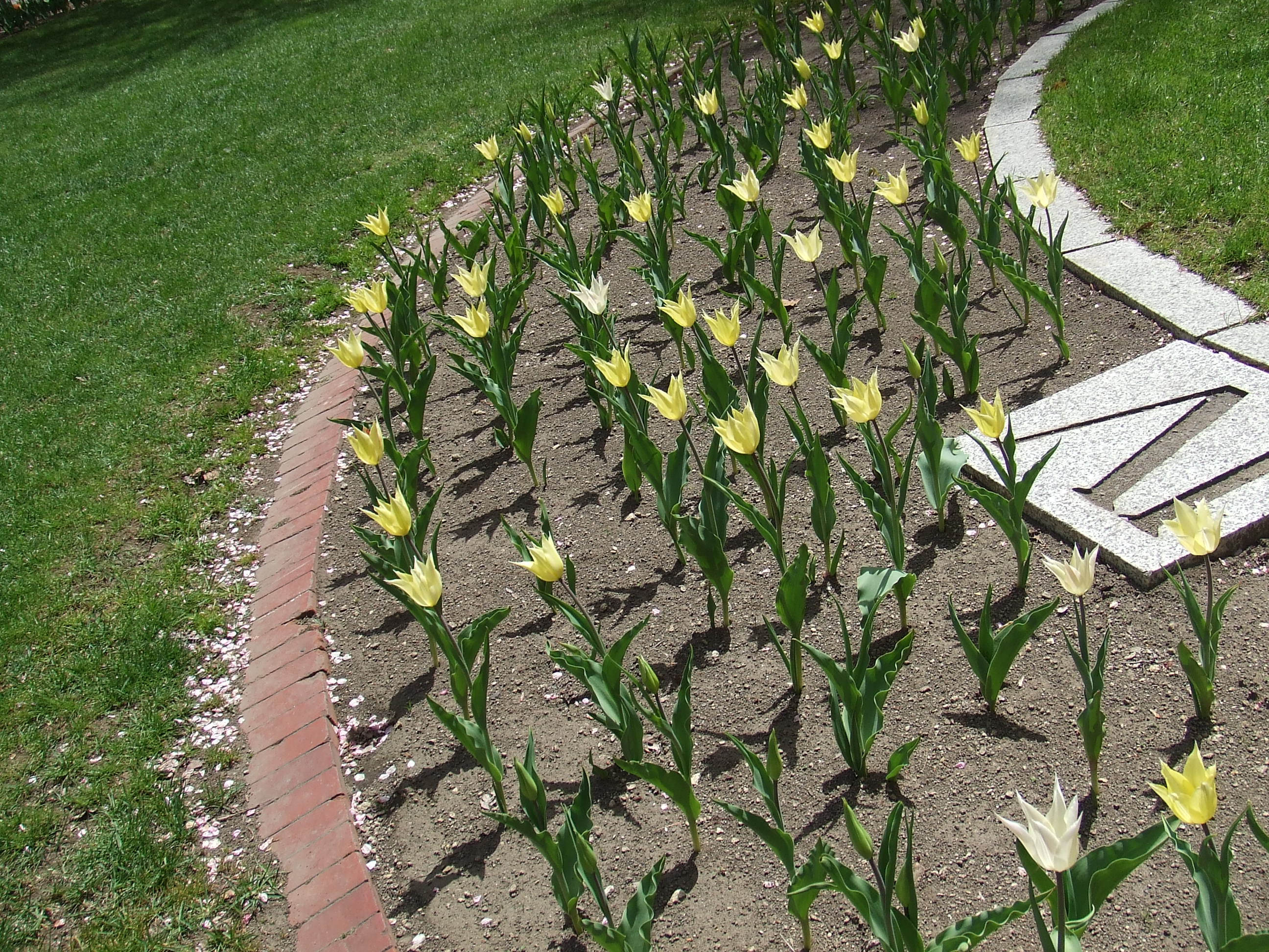 西6丁目の円花壇にはサッポロという種類のチューリップが咲き始めていました。また西6丁目北東にはユキヤナギが白い小花を付けて咲いています。