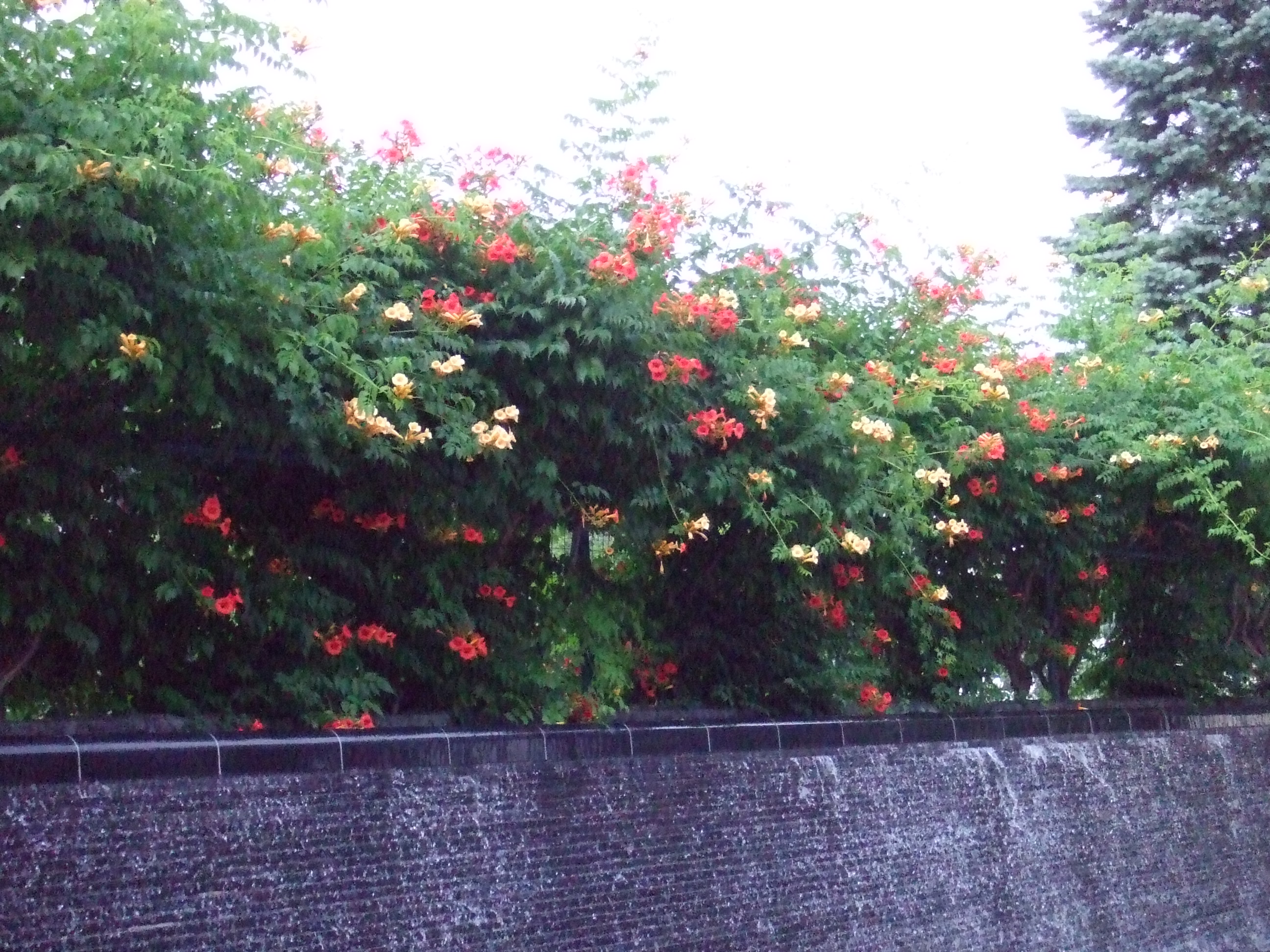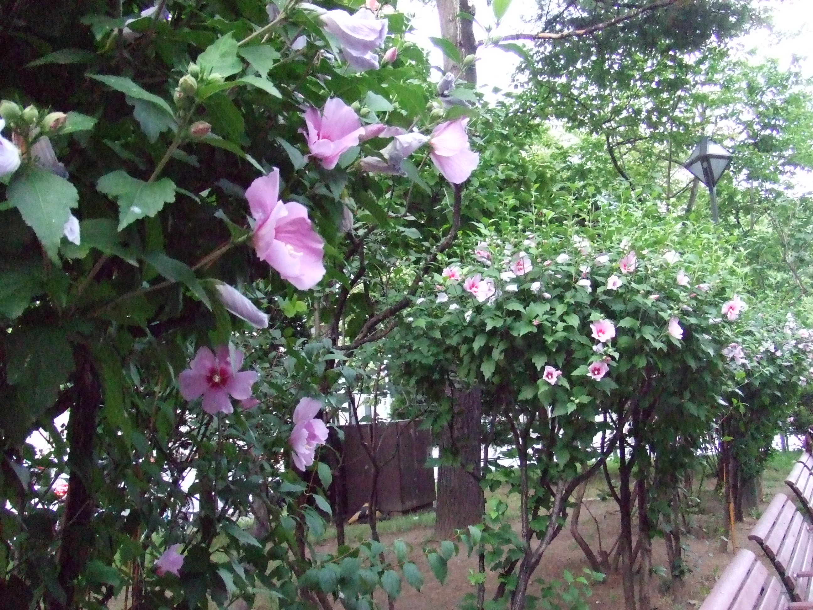 園内の開花情報8.5 2017年8月5日 お天気にも恵まれ、気温も上がり夏まつりのビアガーデンが、大盛況の土曜の昼下がりです。たくさんのお客様がお好みのビールで喉をうるおし楽しまれています。園内では、夏を代表する花たちも見頃を迎えています。 西6丁目北側 ムクゲ 西4丁目 西側ボーダー花壇 西2丁目北側の壁泉のノウゼンカズラも見事に咲いています。 西2丁目 ノウゼンカズラ 西2丁目 壁泉とノウゼンカズラ