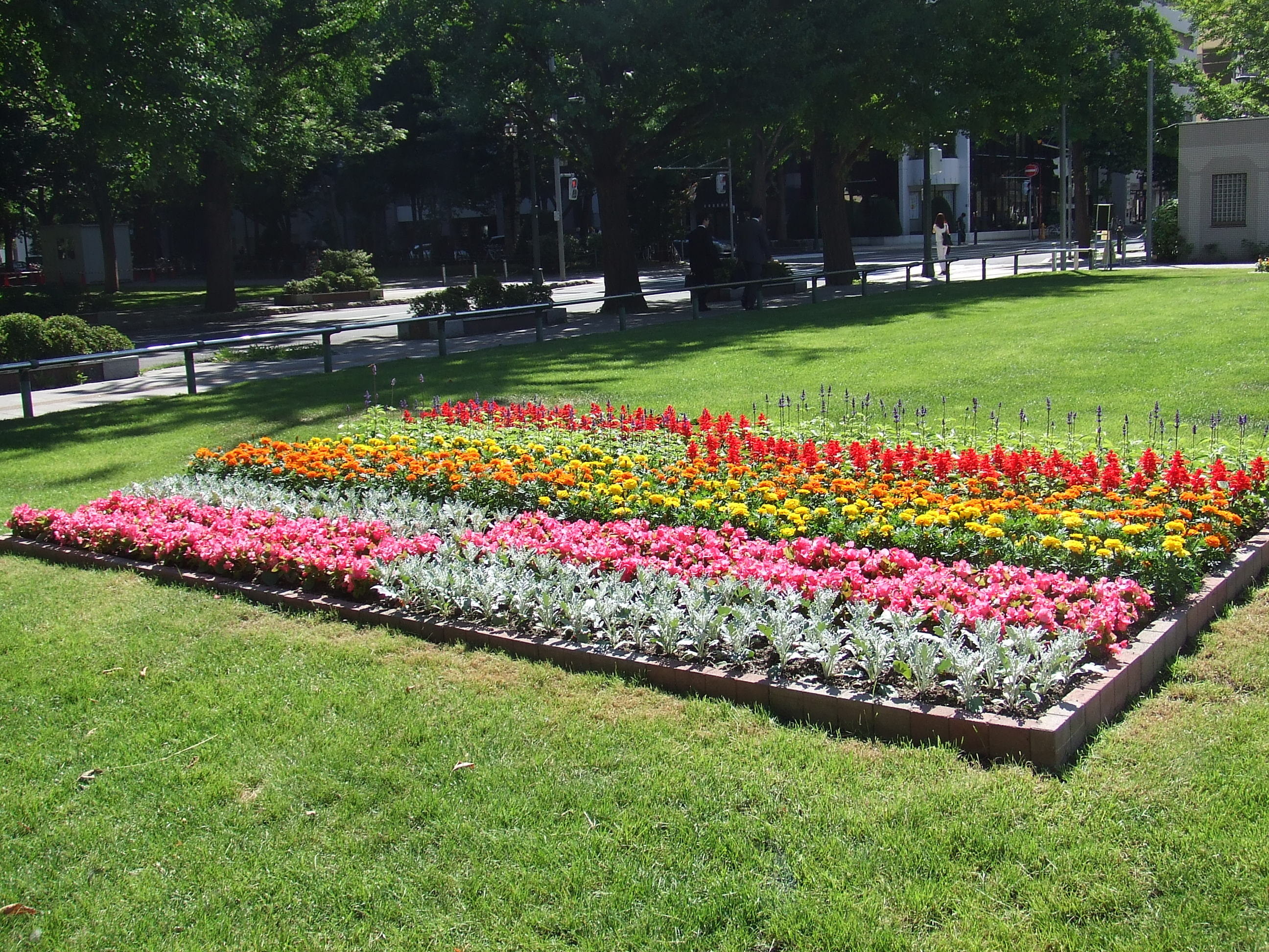 夏花壇 2017年9月1日 今日から、9月になりました。大通公園内の花壇推進組合により造成されている花壇は、コンクール花壇から夏花壇へお色直ししました。同じ花苗ながらも、全てデザインが違い個性が光ります。こちらは、西7丁目の売店前の花壇です。元気に咲いています。 西7丁目 南東花壇 西7丁目 北東花壇 サルビアにトンボ゙が…… よく見ると、トンボが休んでいました。秋が近づいて来ましたね。