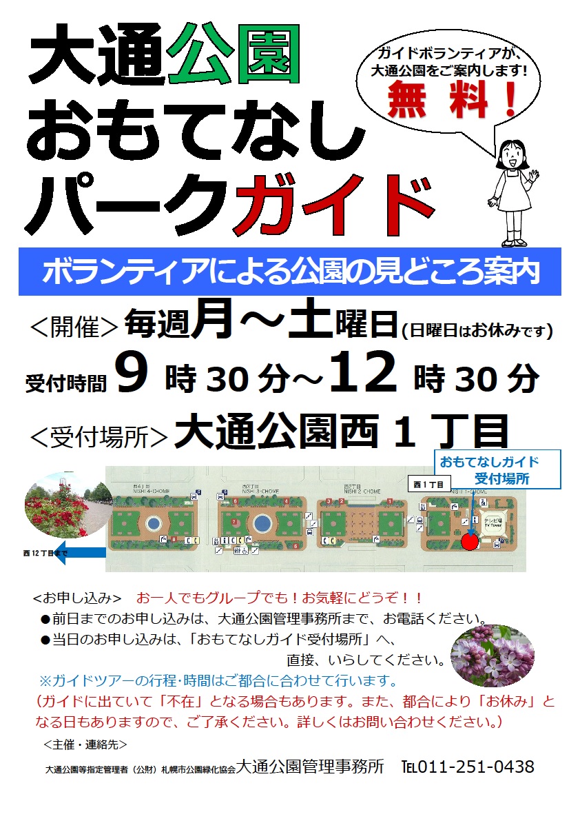 今年で4年目を迎える「大通公園おもてなしパークガイド」が、4月24日月曜日から始まりました。