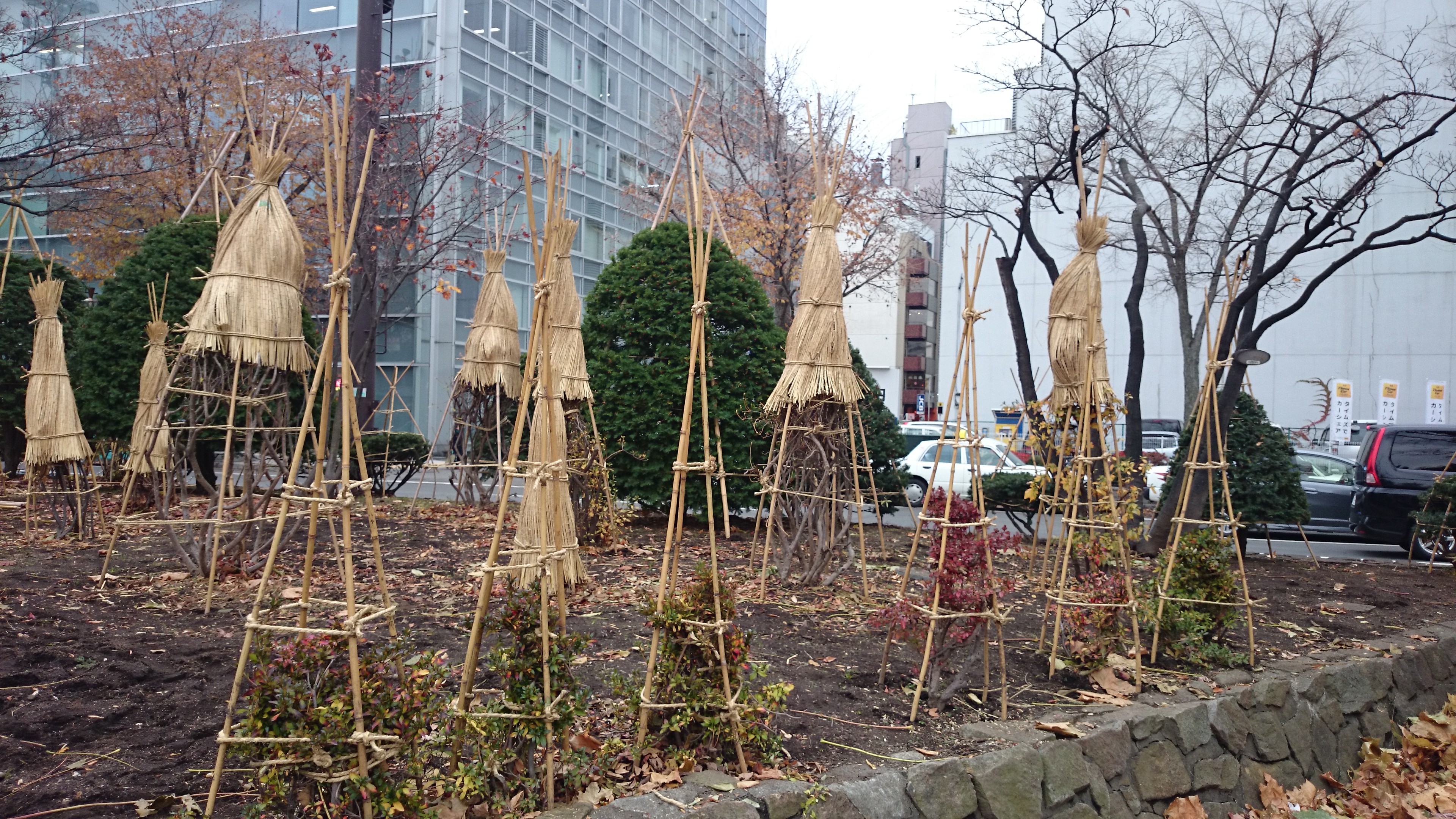 大通公園の冬囲い