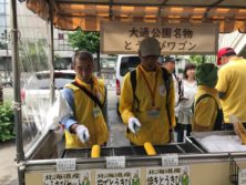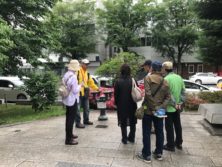 「札幌まつりと大通公園・創成川公園を知るツアー」 「とうきびワゴンの歴史と焼きとうきび体験」が開催されました。 創成川公園には様々なアート作品がございます。 約70年前の古いレンガと新しいレンガを組み合わせた作品など見どころ満載です。 大通公園名物、とうきびワゴン! 焼きとうきび体験!くるくると回し焦げ目をつけて秘伝のタレをからめました。 通常のパークガイドは月曜日から土曜日の9時30分から12時30分まで開催しております。 無料ですので奮ってご参加ください。