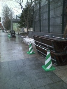 本日、大通公園西1丁目にベンチ設置予定です。西3丁目以降は土日に設置を予定しています。