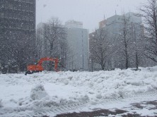 今日は朝から湿った雪が降り続いていますが春に向けて7丁目では車が入って
