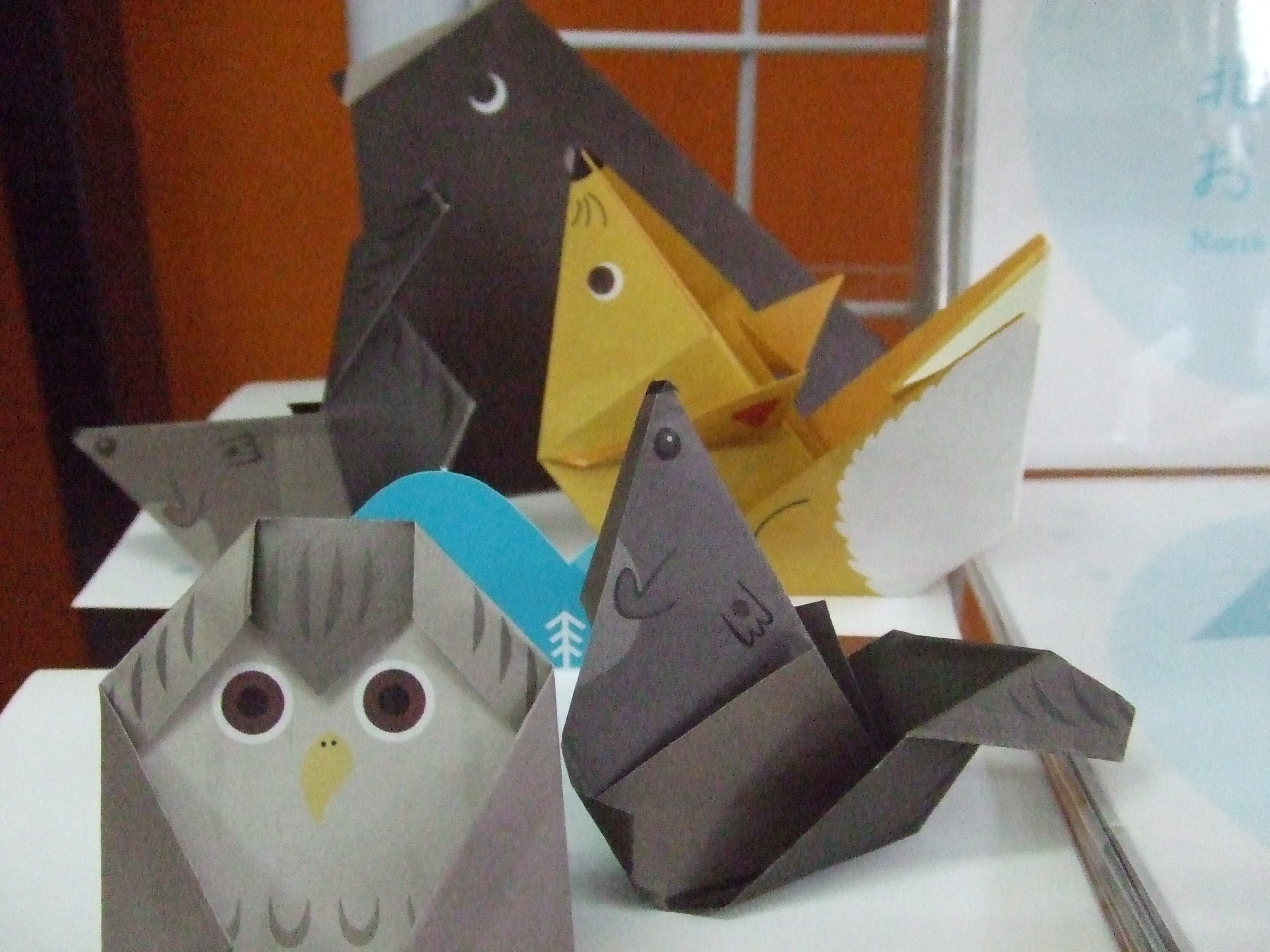 北の動物おりがみは北海道に住んでいる動物ヒグマ、キタキツネ、エゾリスとエゾフクロウの4種が2枚ずつ入っており説明図もあるので簡単に折り紙を楽しんで作ることができます。