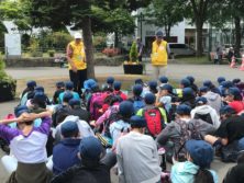 大通公園パークガイドさんから説明を受けたり、質問したりと積極的な児童さんたち。