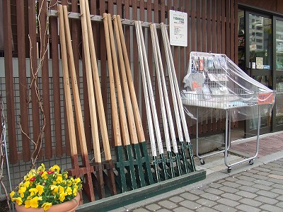 今年も、7丁目ショップ横に竹馬(子供用)を置いています。