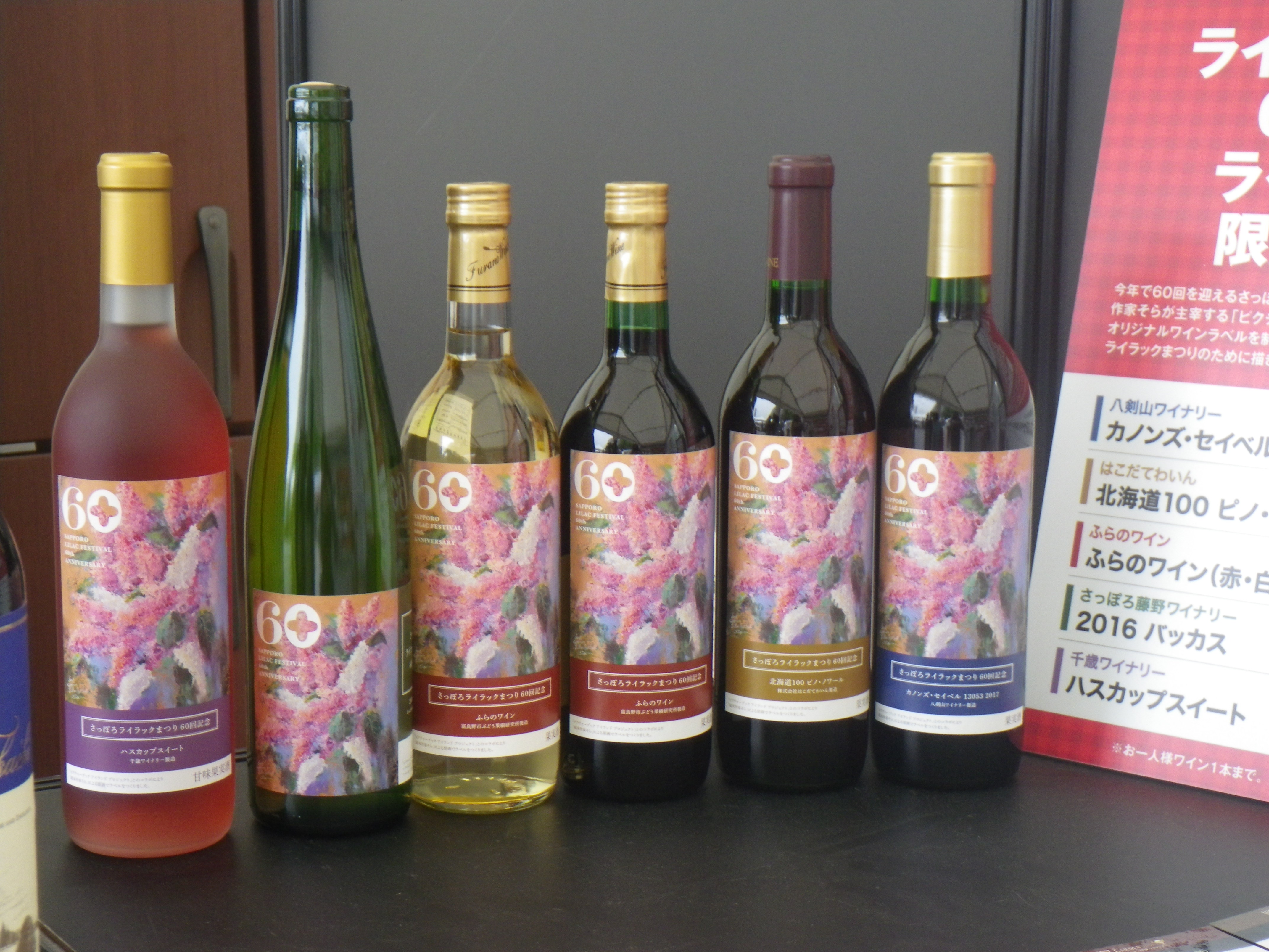 7丁目ワインガーデンでは、ライラックまつり60回記念ラベルワインの販売もしているようです。