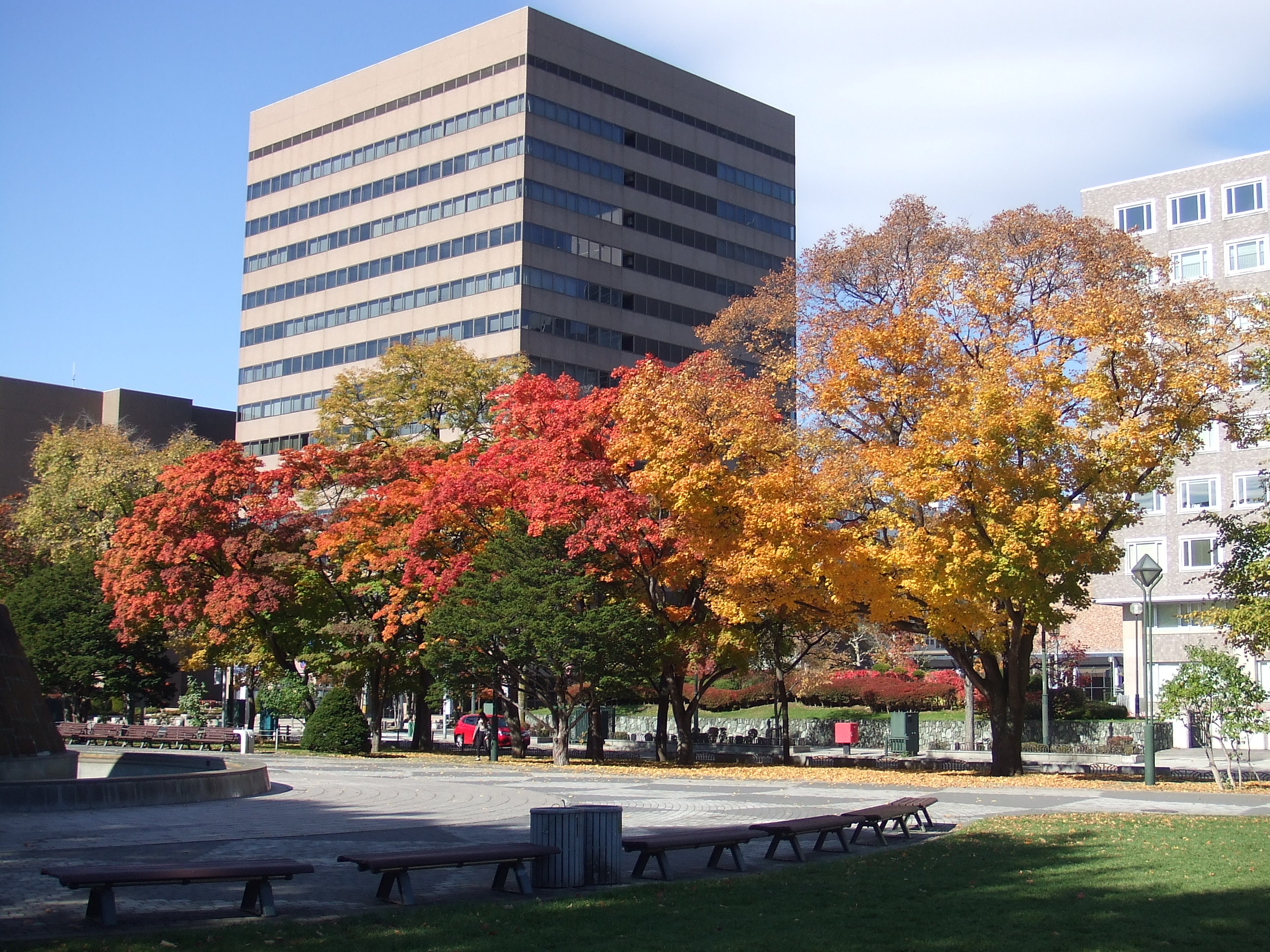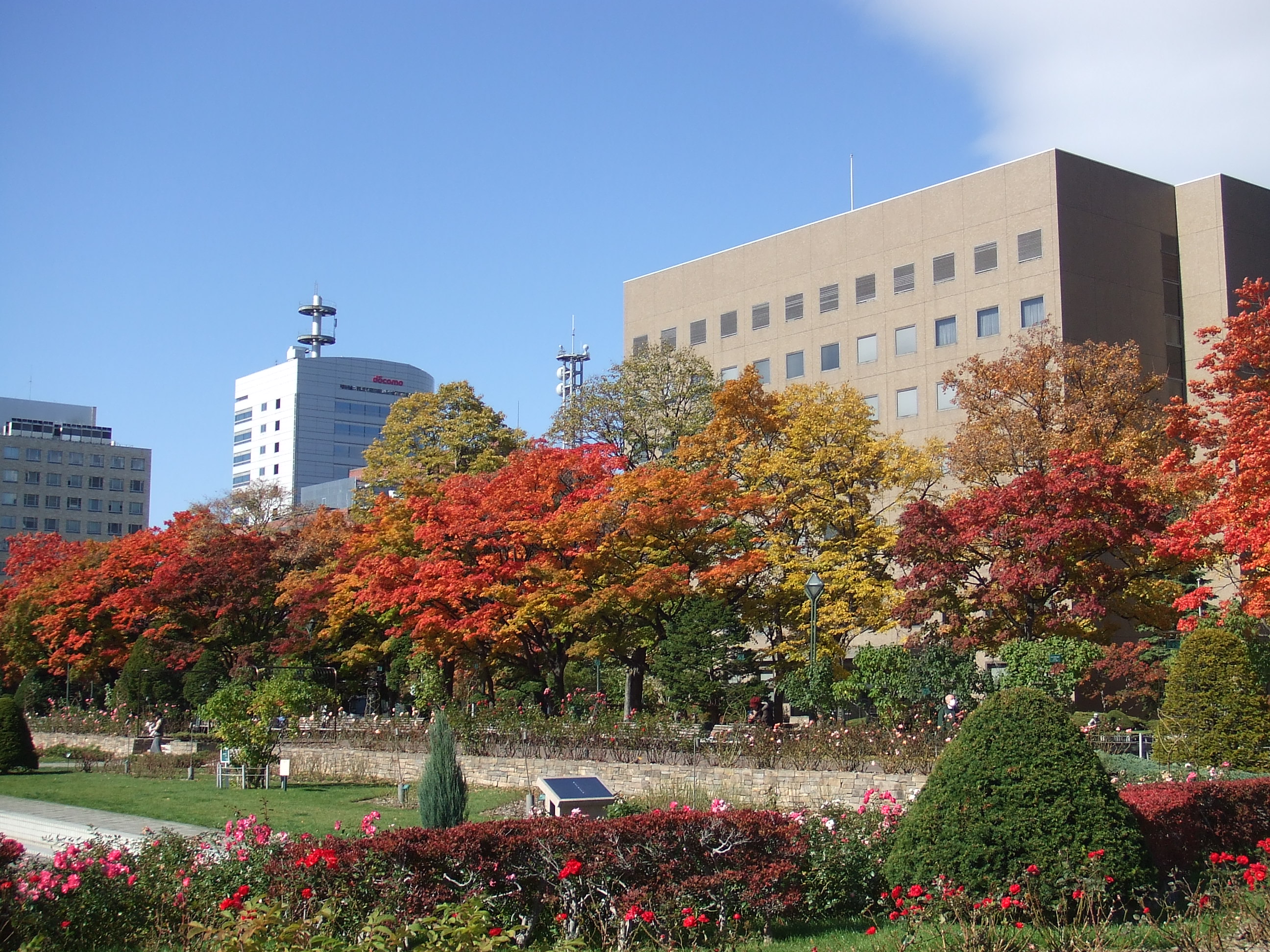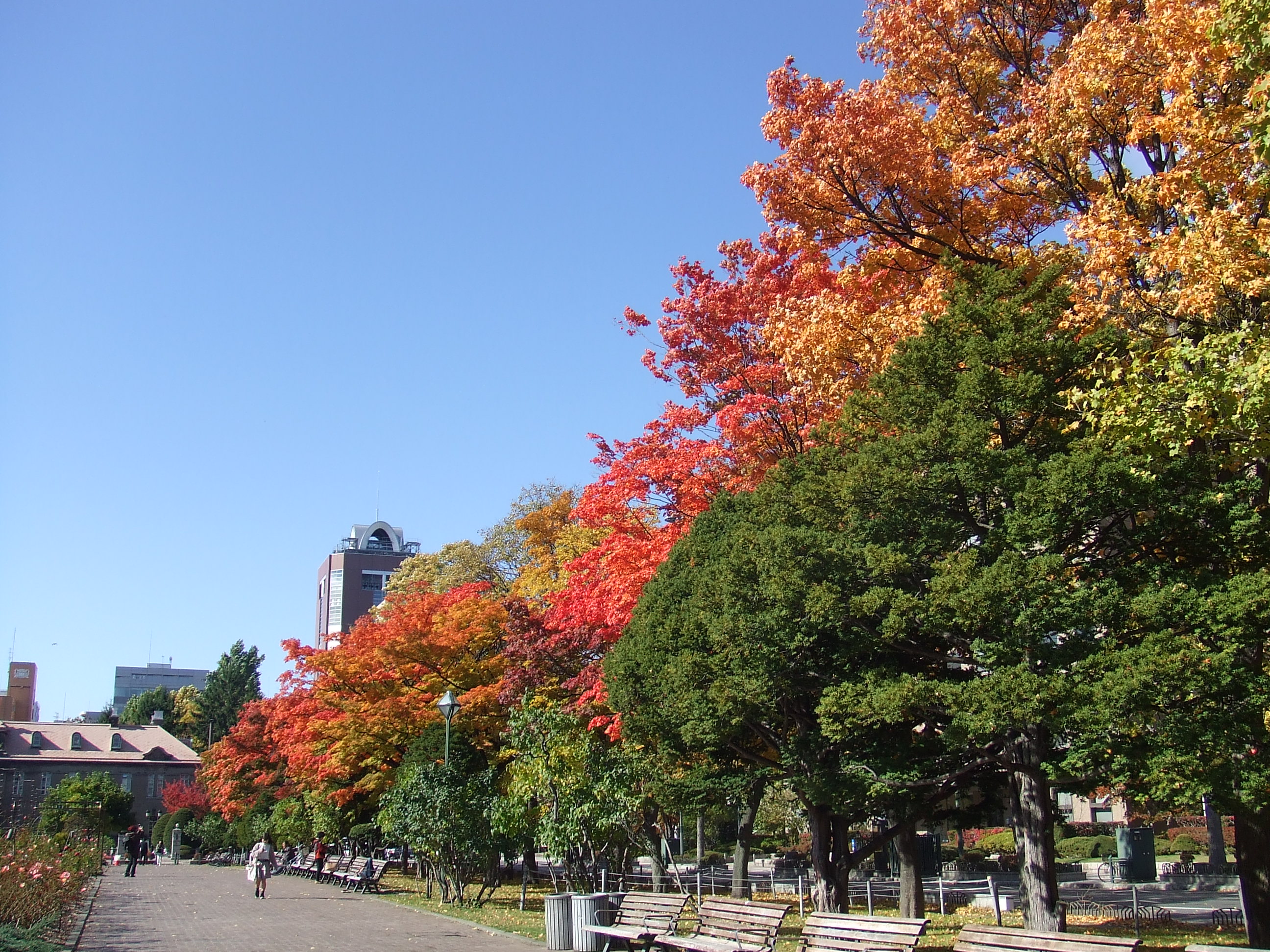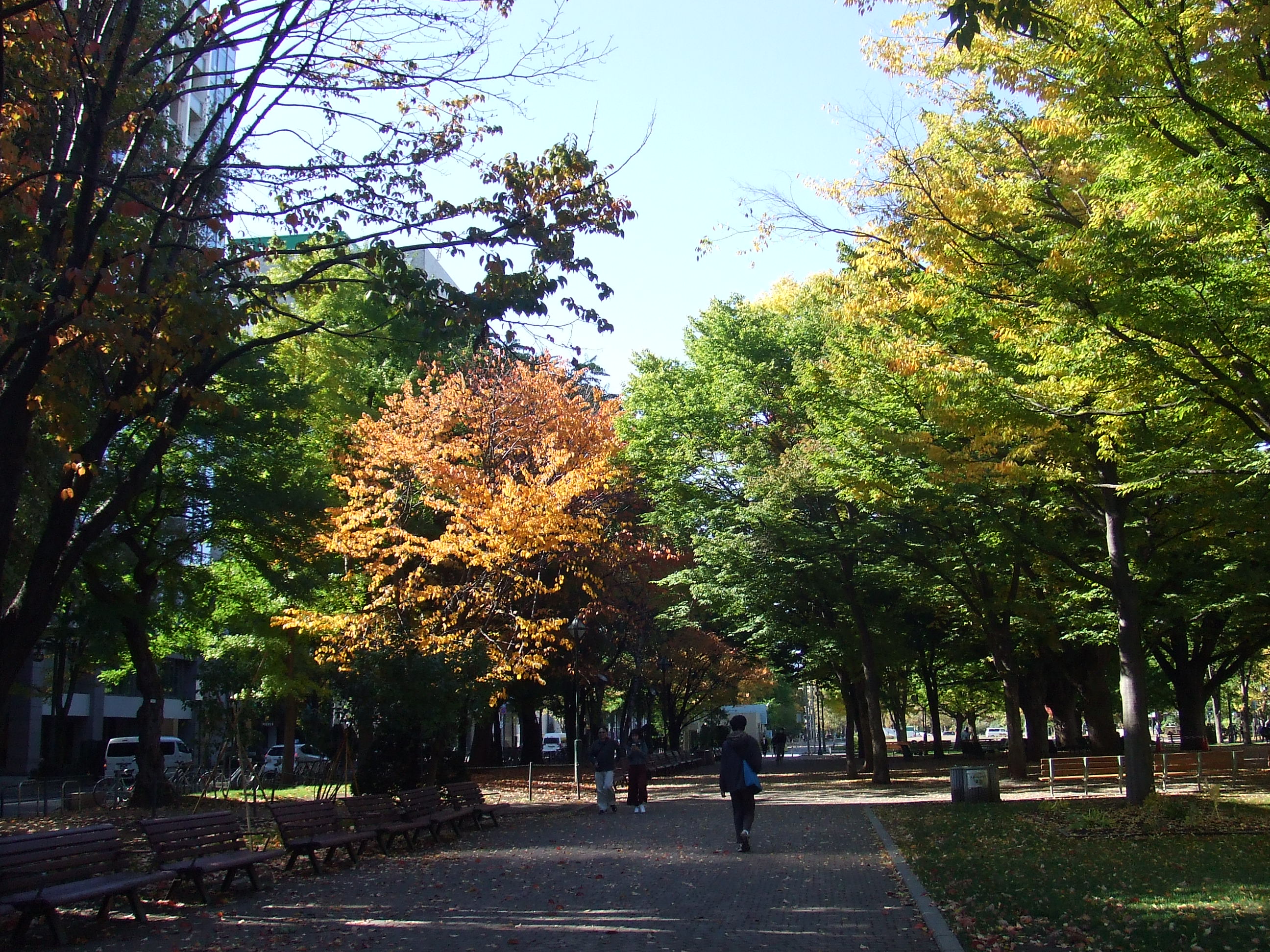 本日、大通公園内はコートなしで歩けるほどの暖かさです。