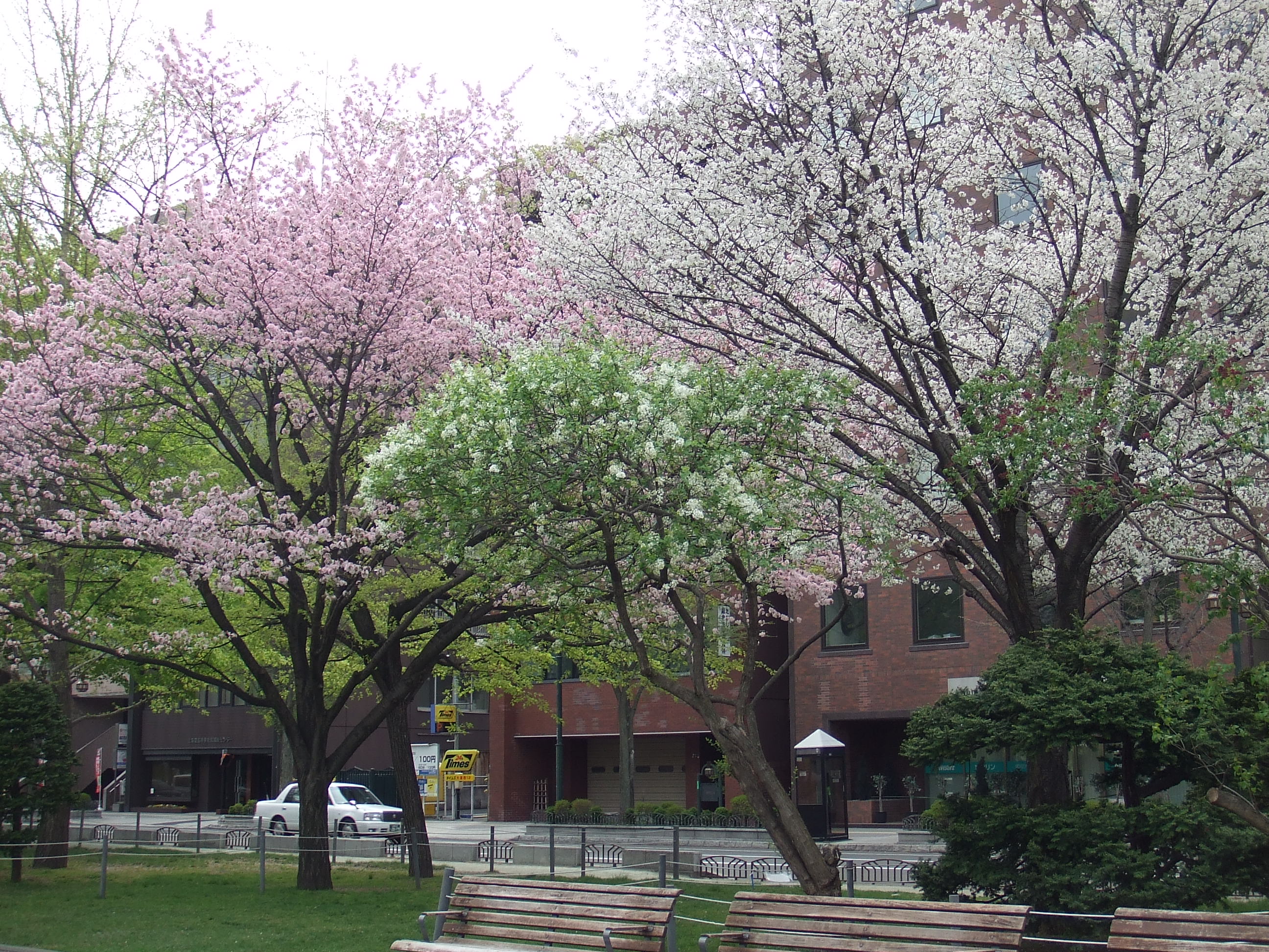 花咲く公園 2015年5月3日 西12丁目ではカスミザクラが見頃を迎えています。 うすいピンク色の可憐なサクラです。遠くから見た木の様子が霞のように 見えることからこのような名前が付けられたそうです。 中央は白いライラックです。 こちらは3丁目紫のライラックです。見頃はもう少し先でしょうか。 こちらの方は7~8分咲きでしょうか。白いライラックは少し早く咲くみたいです。 場所によって開花期間に差があるので、長くライラックを楽しんで頂けると思います。