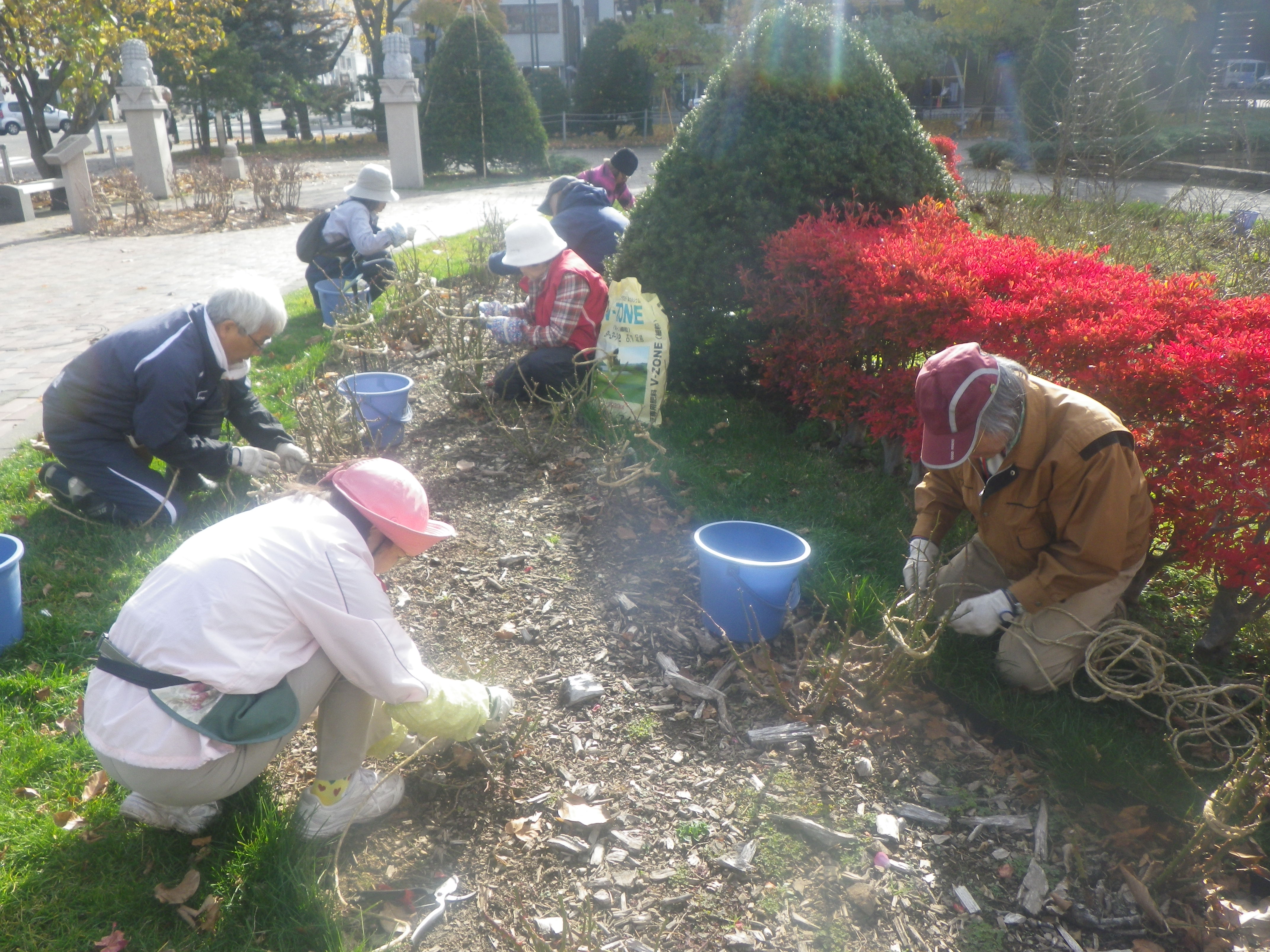 雪まつり会場にもなる12丁目ですが、春の開花を待つバラが眠っています。