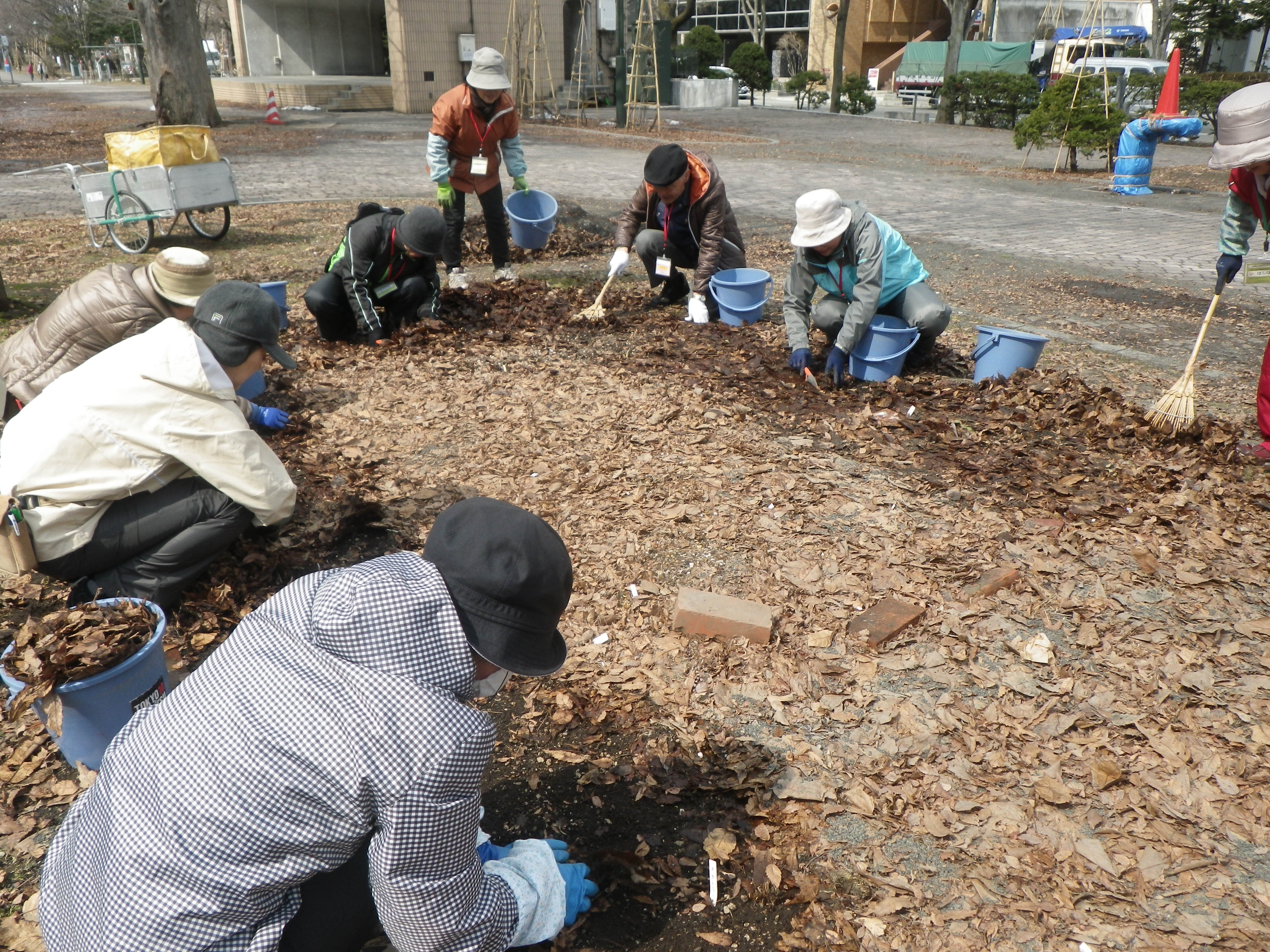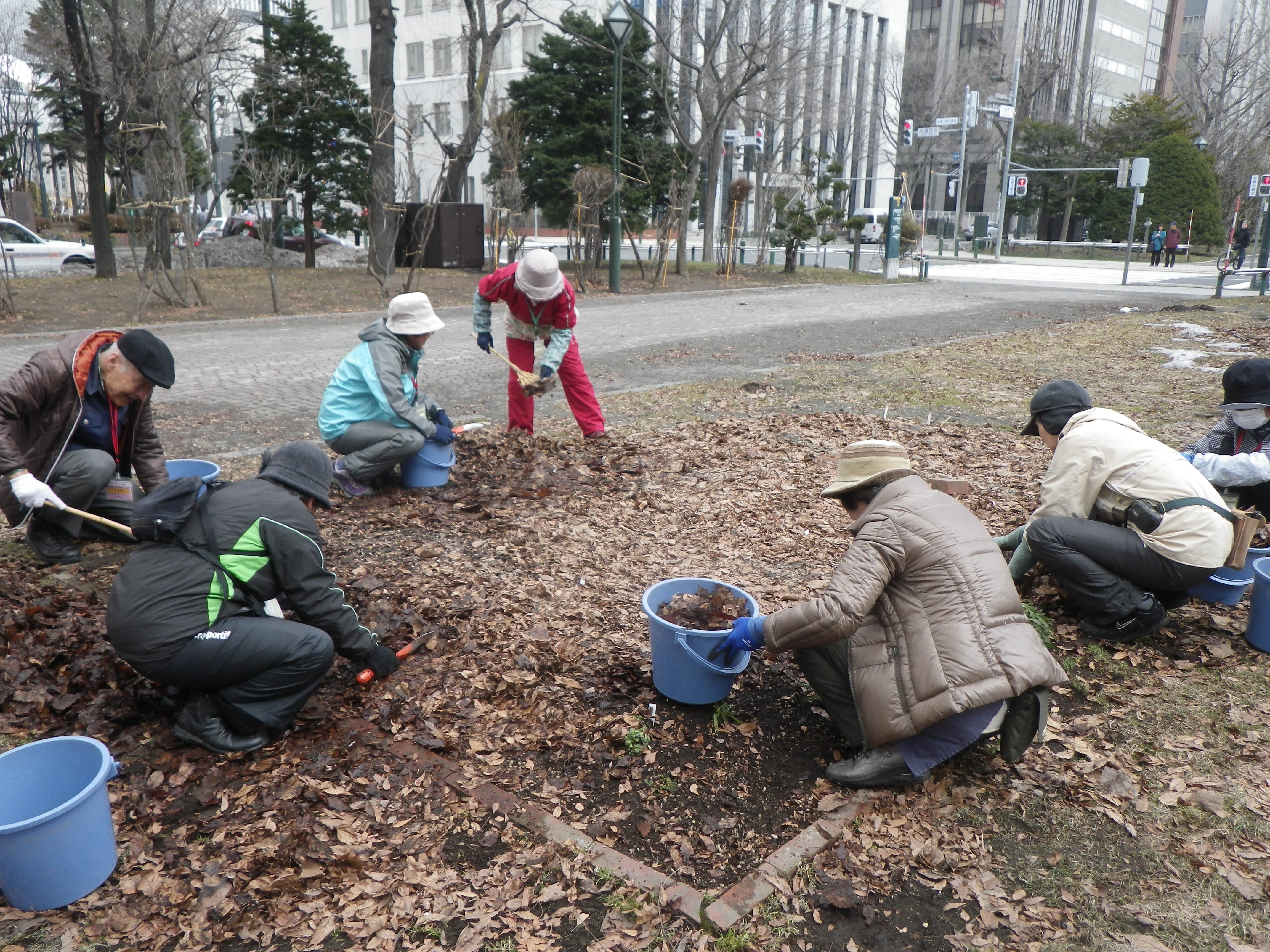 大通り公園花壇維持管理ボランティアさんの春の活動が始まりました。