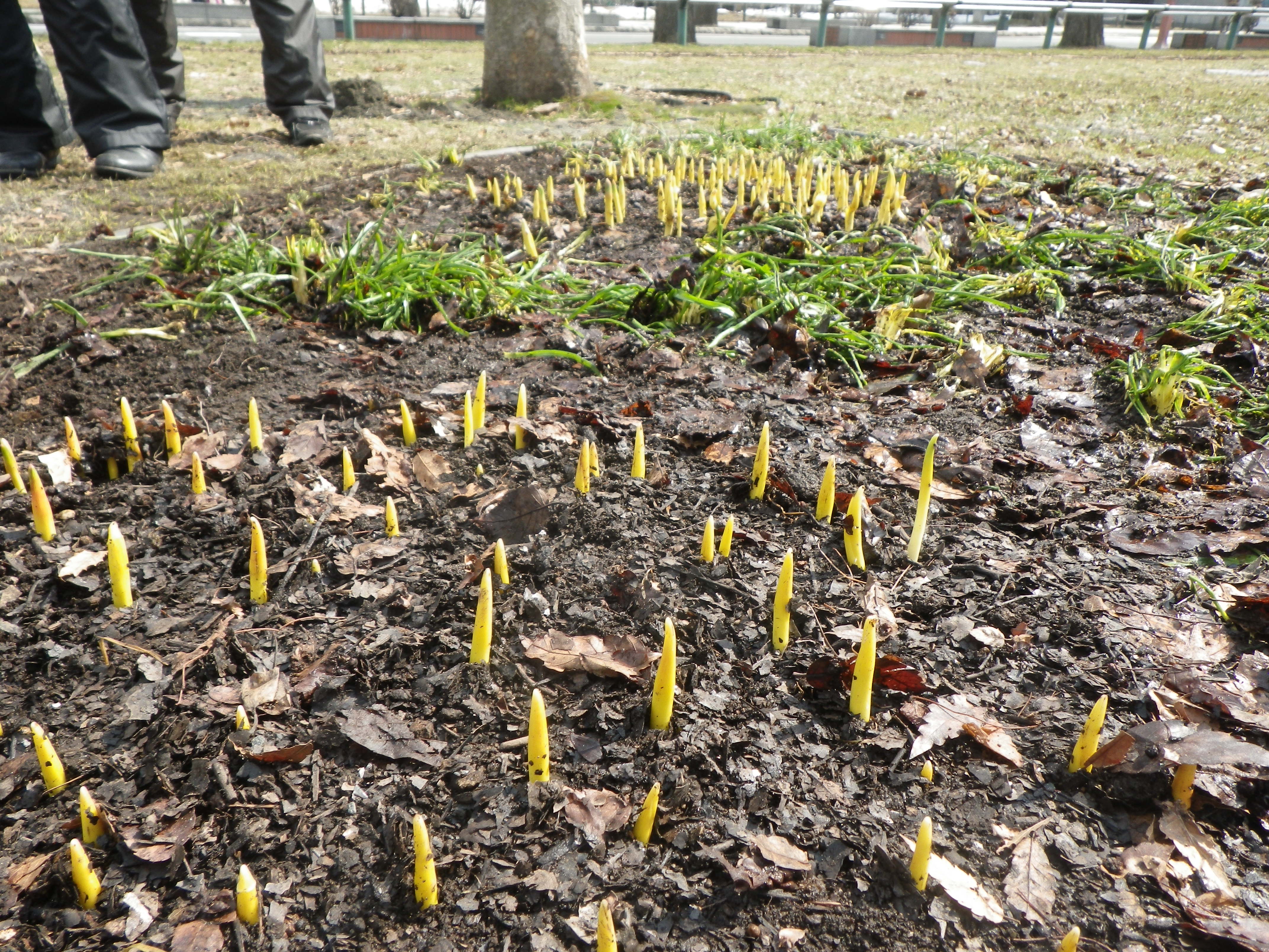 まずは、西6丁目の山野草などを植えている花壇に敷き詰めていた落ち葉
