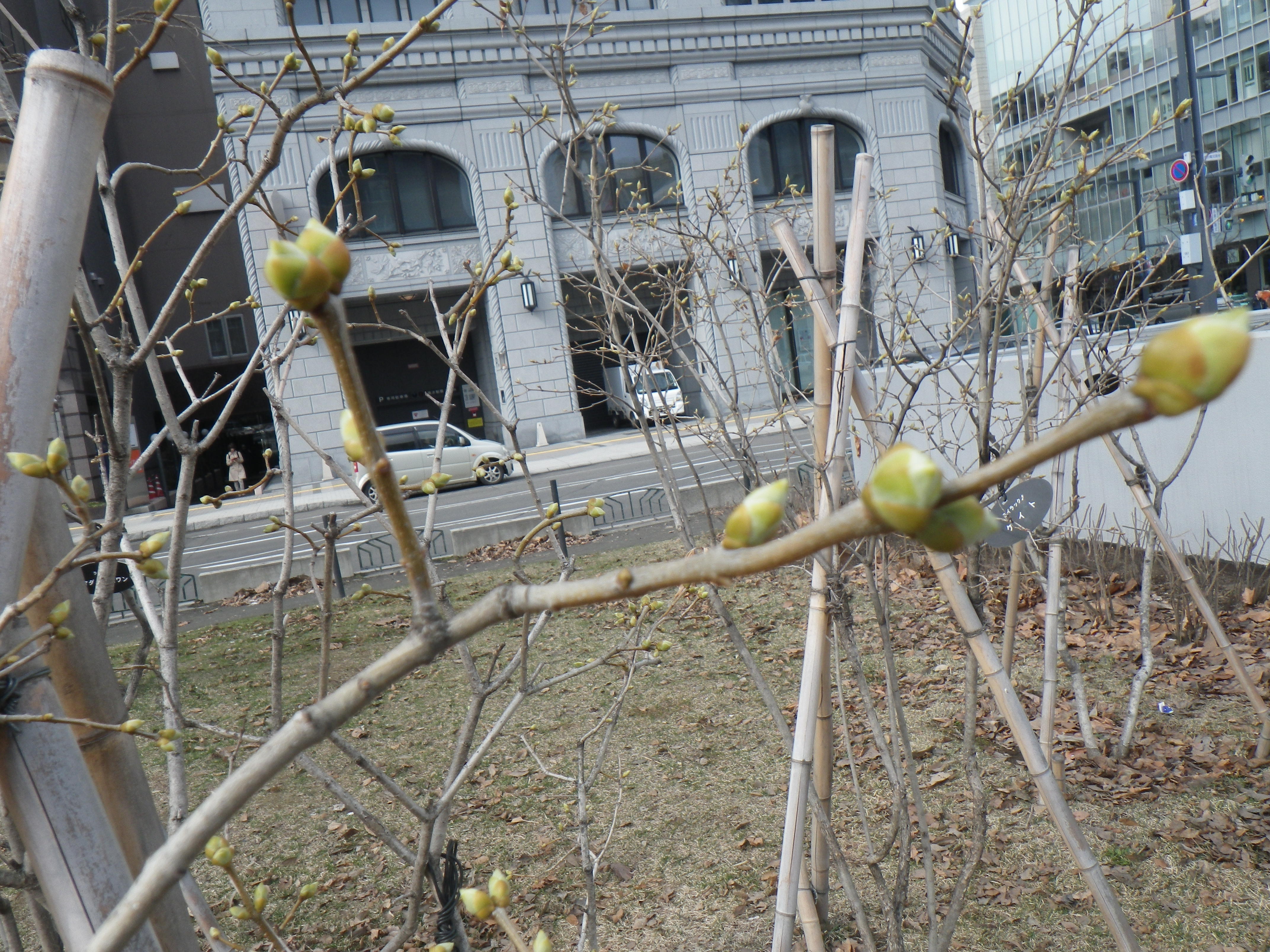 開花するかもしれませんね。右の写真は西7丁目北東のキタコブシです。