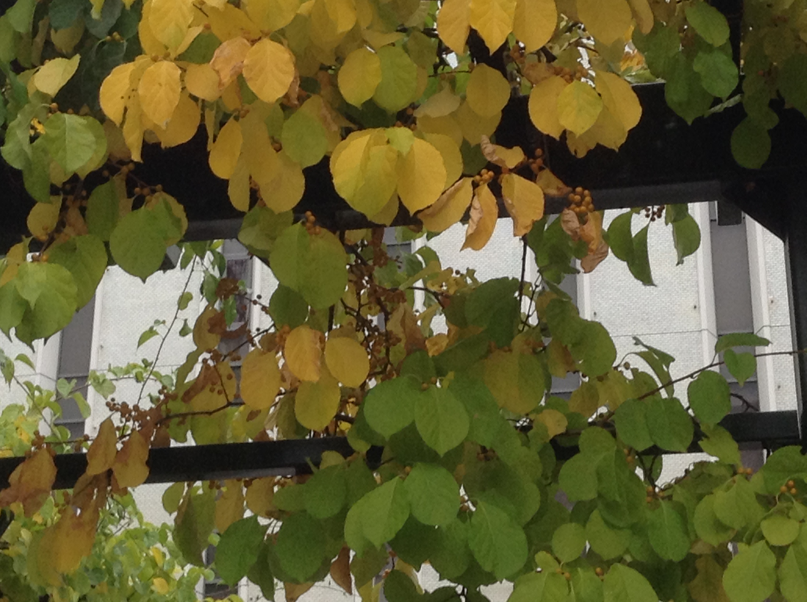 南側ではツルウメモドキの実が黄色く色づいていました。
