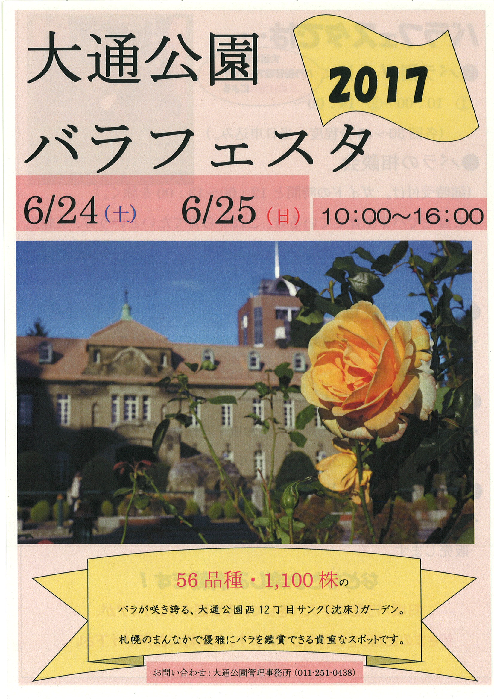 6/24(土)、6/25(日)の二日間、大通公園西12丁目バラ園にて、