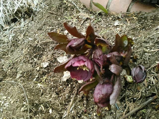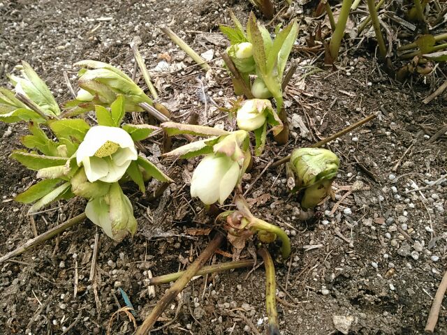 3丁目のクリスマスローズ 2018年4月5日 今日は季節が戻り寒い風が吹いておりますね。でも今まで暖かかったことで例年より早く園内のお花が咲き始めています。3丁目の泉の像のそばの円花壇ではクリスマスローズが咲き始めているのでご紹介致します。