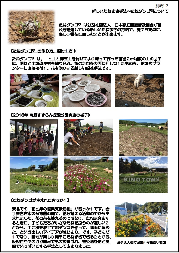 たねダンゴとは、だれでも簡単に楽しく緑花に親しめるものです。