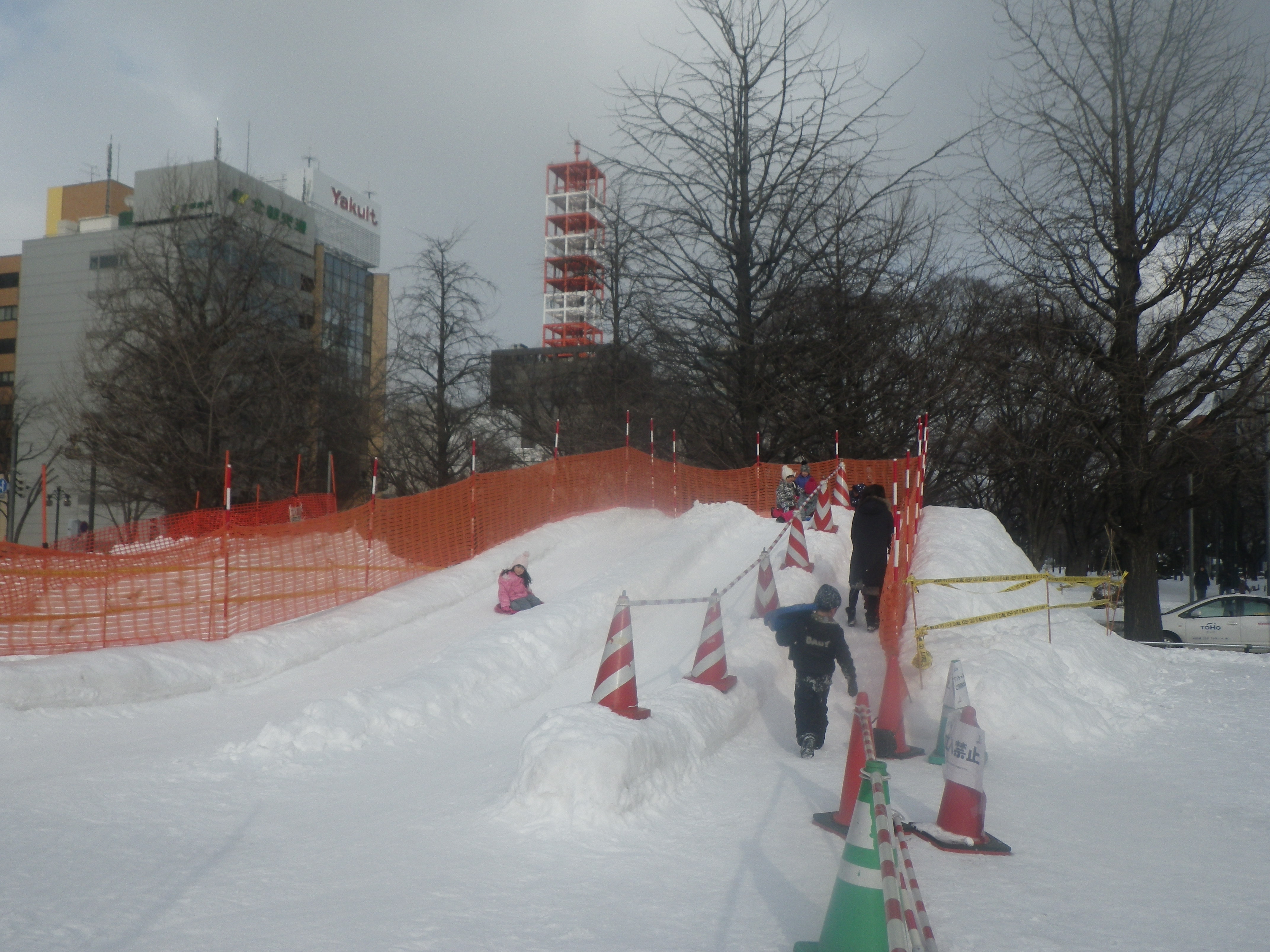 7丁目のソリ山 2018年2月26日 西7丁目東側に例年雪まつり後の雪を利用してソリ山を開放しています。 今日は開放初日でしたがたくさんの子ども達や大人の観光客もソリ滑りを楽しんでいました。 ソリも何種類かありインフォメーションセンター&オフィシャルショップで無料で貸し出ししておりますのでぜひご利用ください。 時間:午前10時より午後4時迄 期間:2月26日~3月10日前後 注: 天候や雪の状況により利用出来ない場合がございます。