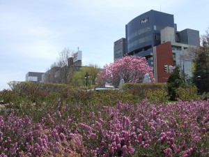 写真手前の花は“エリカ”です。そして、奥の木はポストカード『大通公園の四季』にも入っています、“シモクレン”です。どちらも、今が見頃です。
