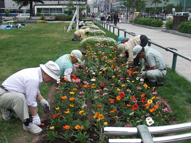 そして、昨日は、夏花壇の花苗植え込み作業を行いました。作業も手馴れ、1時間弱で3600株を植え込みました。